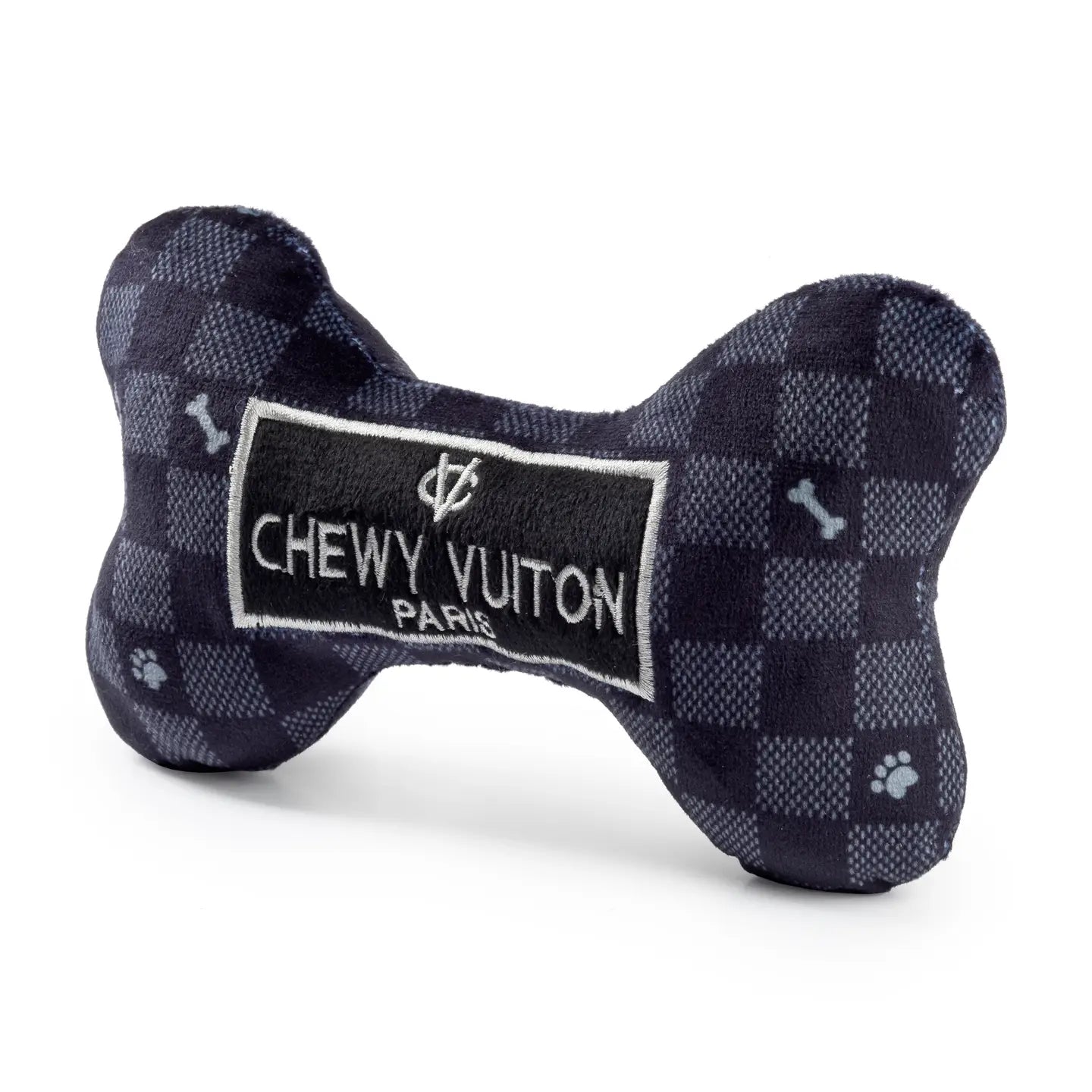Black Checker Chewy Vuiton Bone Squeaker Dog Toy XL