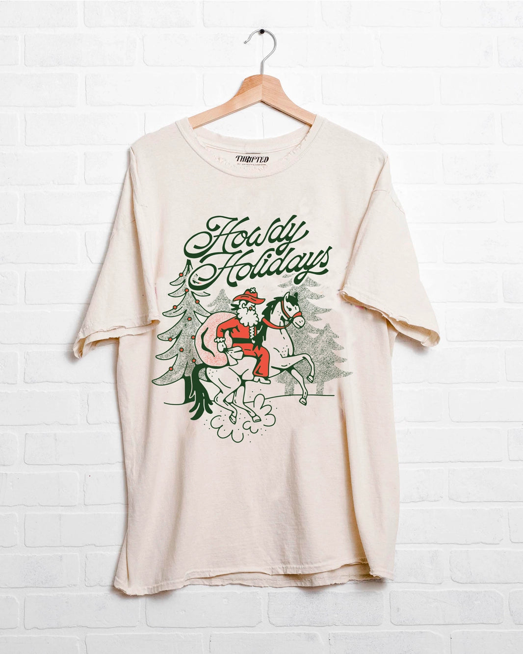 Christmas Howdy Holidays Off White Thrifted Graphic Tee- Holiday Shop