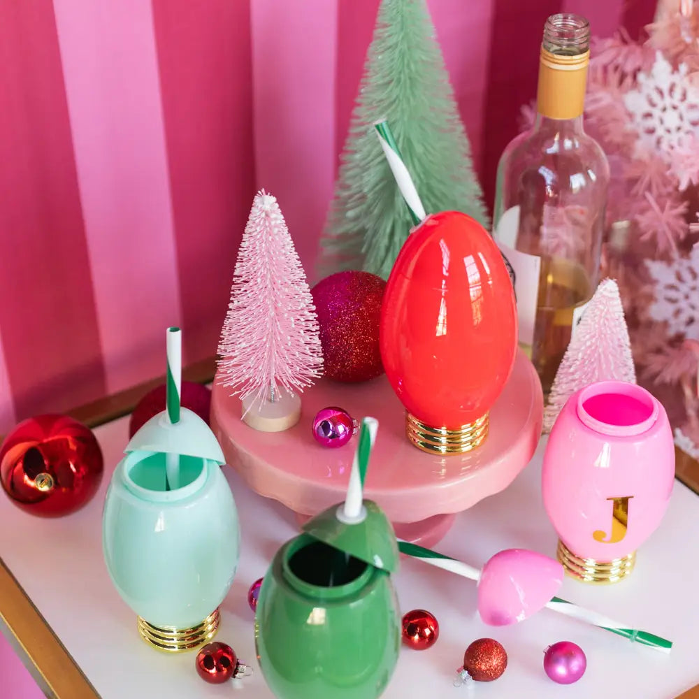 Say cheers to the holidays with this set of four mini holiday light cup sippers! In festive colors and with a built-in spill-proof stopper too, these are the ideal party accessory, secret Santa gift, or must-have this season. Now what to fill each of these mini holiday light cups with?! - Patented festive novelty mini holiday light cup sippers - Includes 41 gold water-resistant alphabet stickers for easy customization - 4-pack light cups in ready to gift packaging - Removable and reusable straws - Spill-proof and BPA-free - Individual sippers hold 12 oz. each