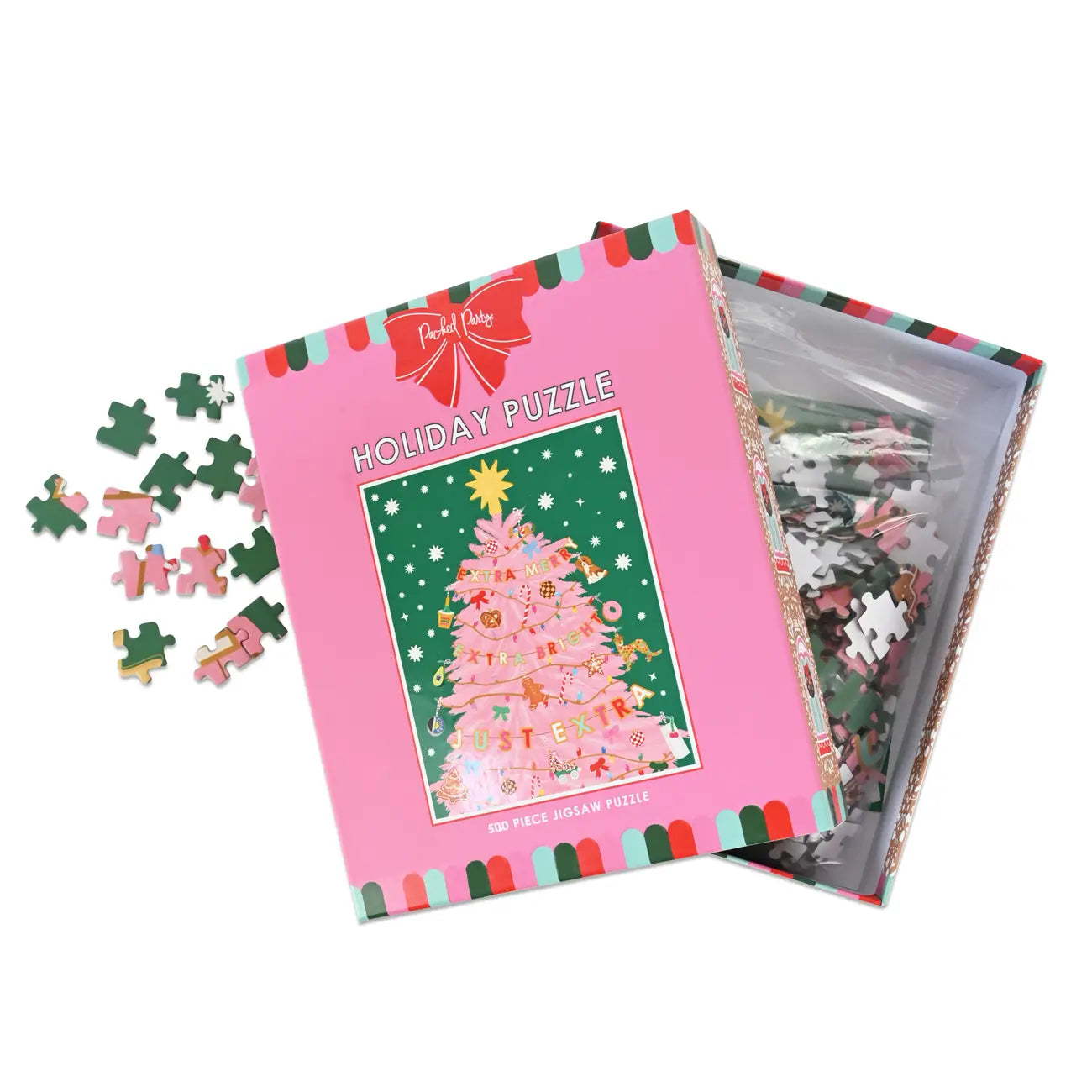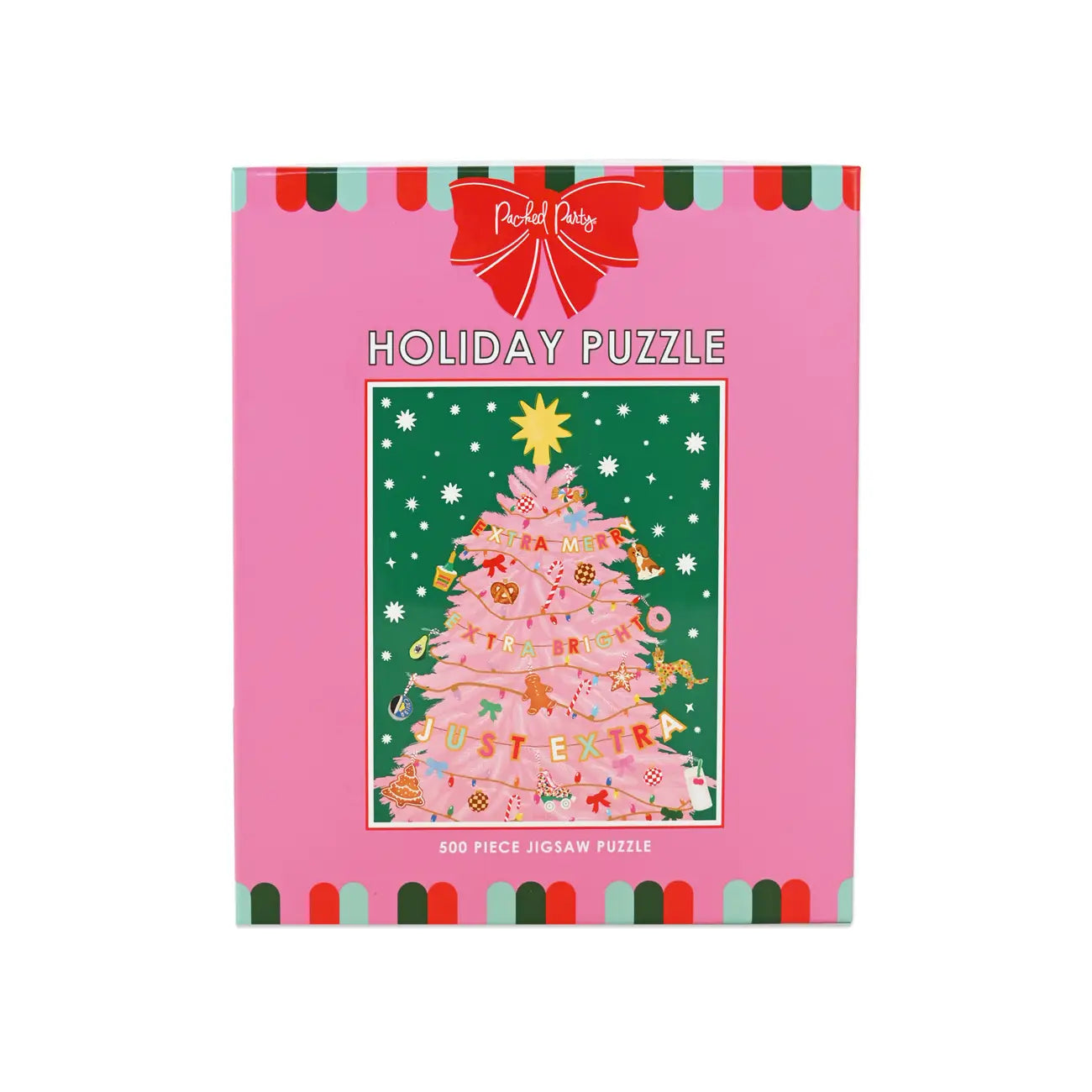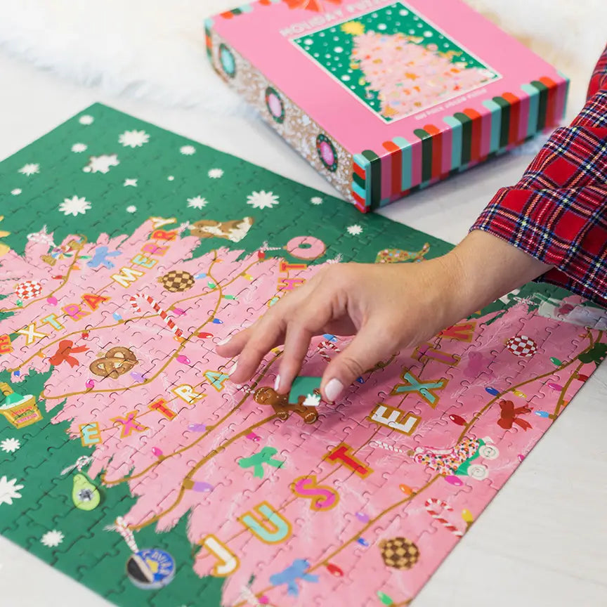 Make the holidays extra fun this year thanks to this luxe 500-piece holiday puzzle we designed. Sturdy thick pieces and high-quality art too help you make the perfect picture for the holidays. Featuring a pretty pink tree, and a garland with all the snacks, this puzzle makes the perfect gift or hey, even little something for yourself this season to work on!