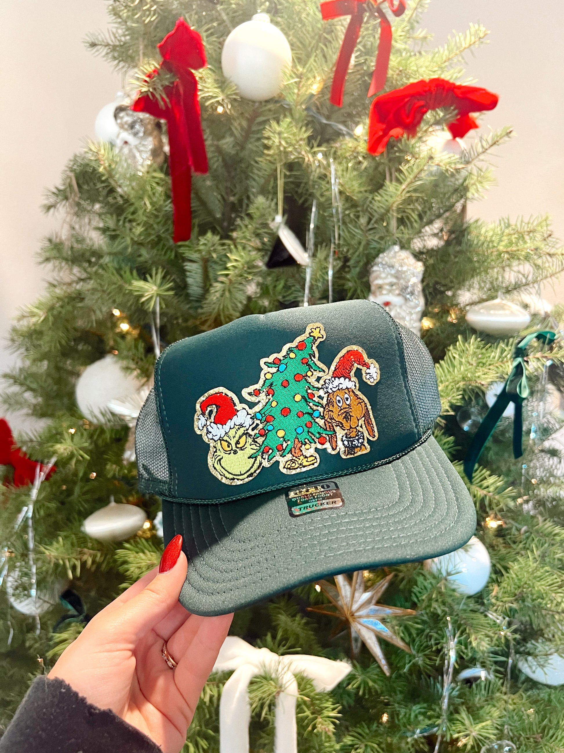 The cutest trucker hat for anyone who loves the grinch!