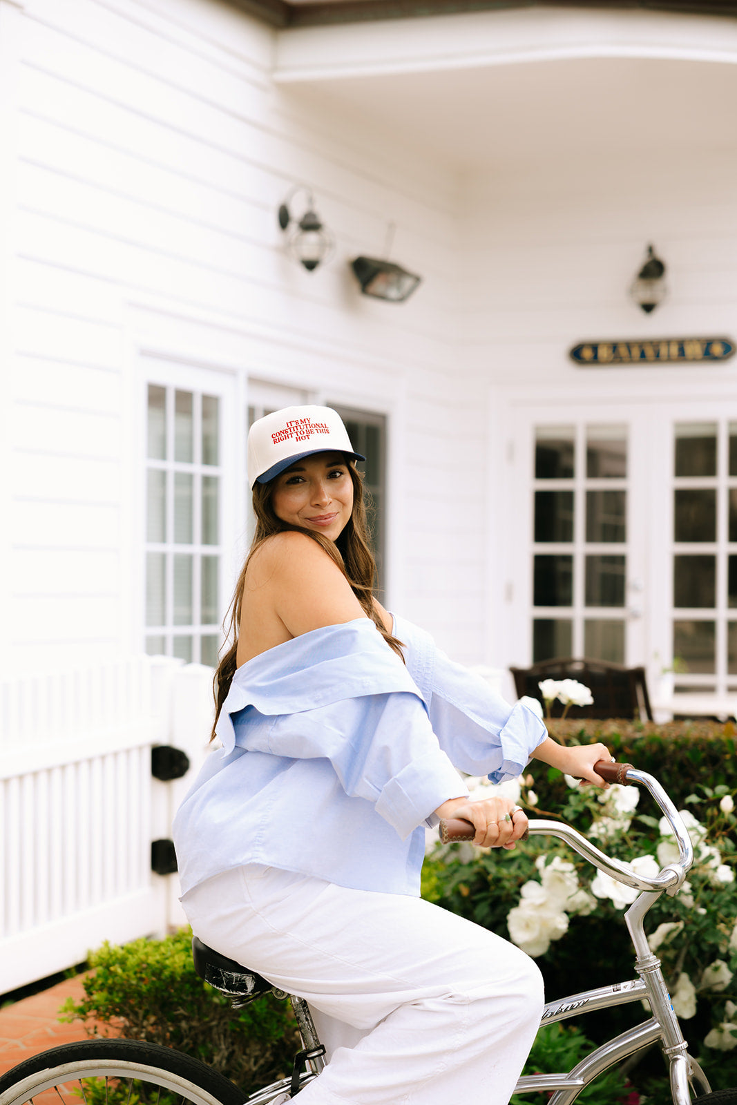 Introducing our "Constitutional Hotness" 5-panel hat! Made with a navy and natural blend, it's perfect for any occasion. With bold red embroidery that declares "It's My Constitutional Right To Be This Hot," this hat adds a touch of humor and confidence to your look. Lightweight and breathable, it's the perfect accessory for those who aren't afraid to stand out.