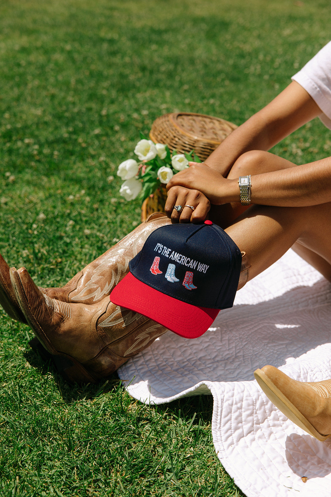 Celebrate the American spirit with the It's The American Way hat. With a sleek navy and red design, this 5 panel hat is the perfect addition to any outfit. Show off your patriotism in style and comfort.