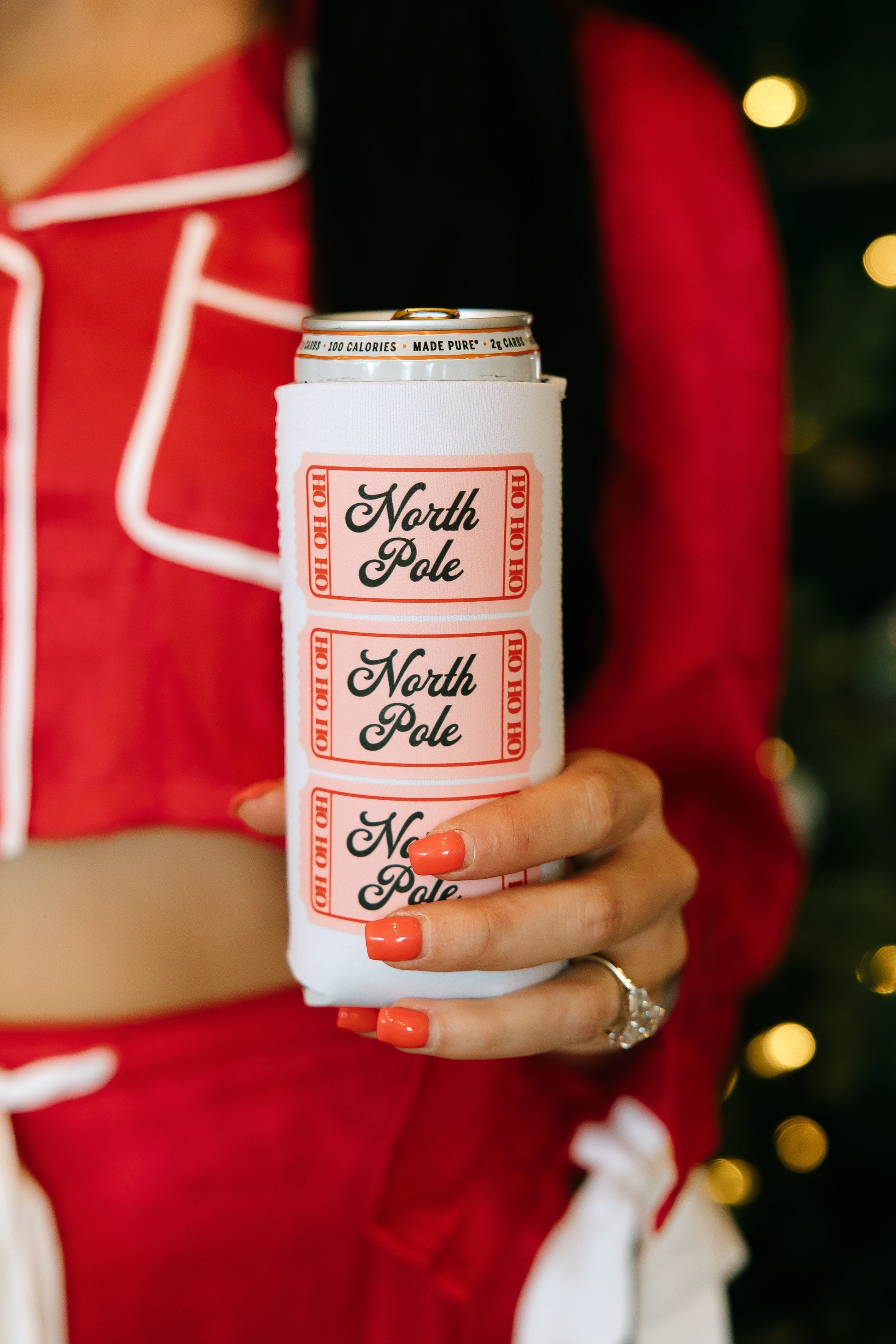 North Pole Admit One Holiday Can Cooler- Holiday Shop