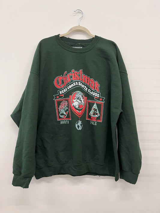 Christmas Patch Military Green Thrifted Sweatshirt- Holiday Shop